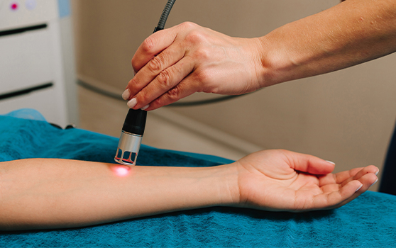 A medical laser for pain management uses focused light to reduce inflammation, relieve pain, and promote healing by stimulating cells and improving circulation.
